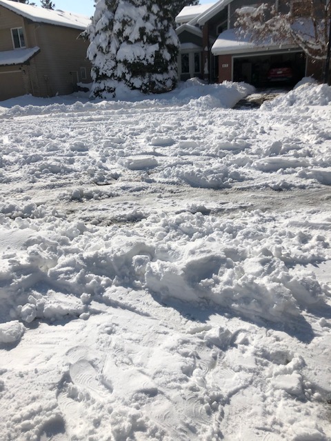 In the blizzard’s immediate aftermath, all of the cul-de-sac neighbors were out shoveling or snow-blowing their own driveways. That worked for the first day. But then came the question of how we each might travel beyond the end of our own driveways out into the world beyond. You see, our little neighborhood does not appear anywhere on the city’s list of “streets we must plow.”