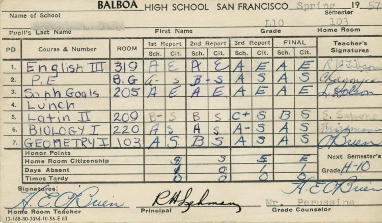 - Of course, I had report cards in college.