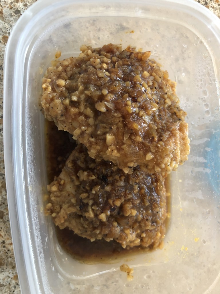 I detected salt, pepper, paprika, turmeric, a little Turkish spice we picked up at the Istanbul Bazaar a few years ago, garlic salt, cayenne, and a couple of other things my tongue is not sophisticated enough to discern.